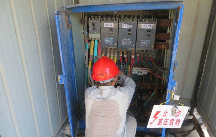 就在快要離開蒽油現(xiàn)場的時候,老楊又接到了需要接臨時電源的通知,于是他拿起工具又出發(fā)了。