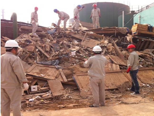 烈日炎炎,在公司總經(jīng)理喬樹華號召下,由健康安全環(huán)保部經(jīng)理孫長輝現(xiàn)場指揮,大家自行結隊,不畏辛苦,拆卸木箱、搬運木板、揀拾垃圾,將廢棄物重新規(guī)整,并對其進行分類,對能重新再利用的進行扎堆存放,對該遺棄的做集體堆放運出廠區(qū)。