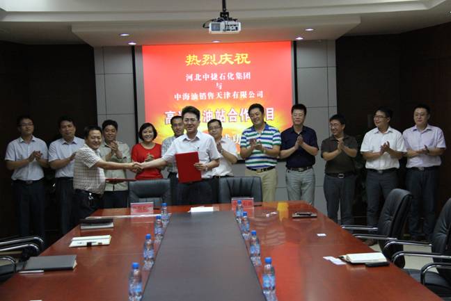 8月29日下午,在新啟元科研樓三樓會議室,河北中捷石化集團與中海油銷售天津公司舉行高層洽談會暨沿海高速服務區(qū)加油站合作項目簽字儀式。會議由中捷石化集團監(jiān)事會主席伊國東主持,中捷石化集團常務副總經(jīng)理劉國新、中海油銷售天津公司總經(jīng)理馬國東出席并作講話。華辰石油公司總經(jīng)理馬強與中海油銷售天津公司副總經(jīng)理孫昊分別代表雙方在合作協(xié)議上簽字。