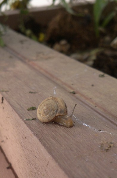 無意中,拍到了一只蝸牛,它當(dāng)時是在蹣跚得前行。這只蝸牛讓我想起了兒時的一首童謠: