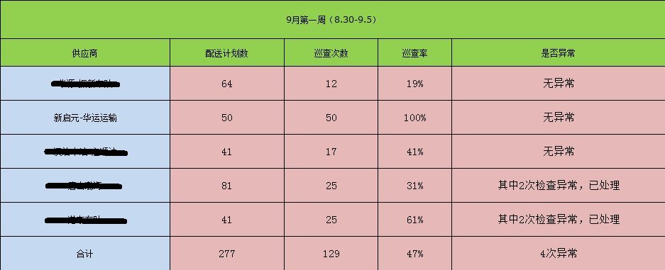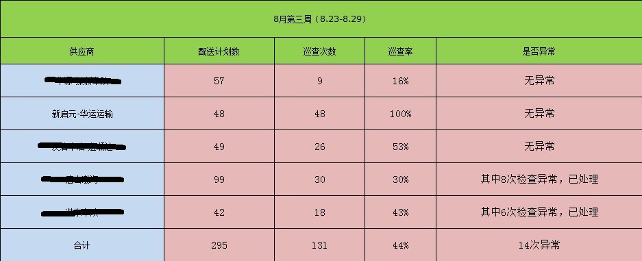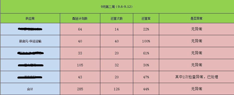 與殼牌合作以來,華運(yùn)車隊(duì)通過優(yōu)秀的運(yùn)輸質(zhì)量得到了殼牌公司的認(rèn)可,殼牌公司希望各車隊(duì)加強(qiáng)巡查力度。通過表格可以看出,河北地區(qū)與殼牌合作的五家供應(yīng)商中,華運(yùn)車隊(duì)的配送質(zhì)量是最高的。但我們也清楚的認(rèn)識(shí)到,成績是暫時(shí)的,要想繼續(xù)保持這么好的成績,必須繼續(xù)加強(qiáng)對車輛和駕駛員的管理。