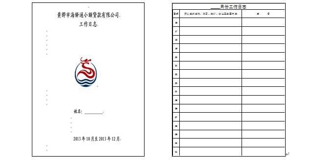 為了更好地推動工作,提高工作效率和員工的責(zé)任感,貸款公司開展了員工工作日志制度。使每位員工都能清楚自己今天做了哪些工作,哪些工作還沒有做,自己心里有一個工作算盤,如何合理安排時間,去有效落實(shí)工作,把工作干得更好,更出色。公司還規(guī)定每半月亮工作日志、談感悟。同時通過工作日志,也能具體掌握全體員工的工作概況,對工作中的得與失,起到很好的檢驗(yàn)和總結(jié)作用。