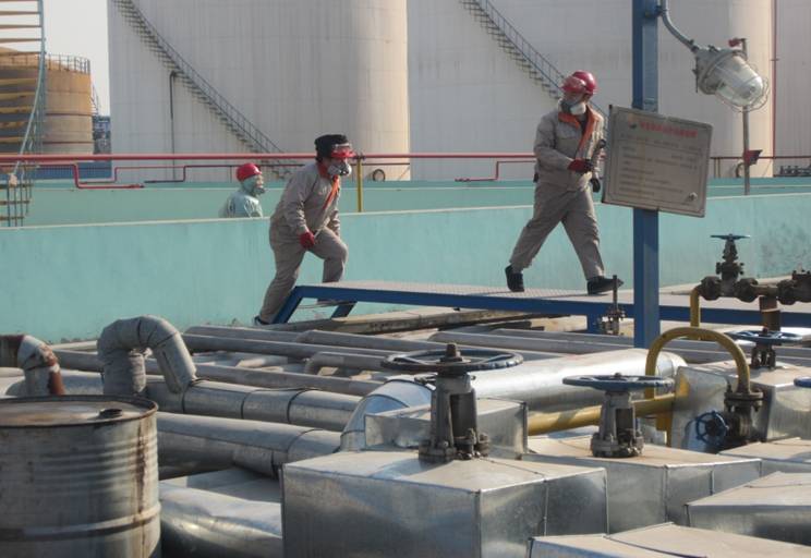 為檢驗(yàn)儲(chǔ)罐冒油事故應(yīng)急預(yù)案的可行性和可操作性,檢驗(yàn)現(xiàn)場(chǎng)操作人員對(duì)應(yīng)急事件的反應(yīng)和處理能力,2014年1月22日下午,運(yùn)行三部在純苯罐區(qū)組織了儲(chǔ)罐冒油事故應(yīng)急演練。公司安全副總劉立新到現(xiàn)場(chǎng)進(jìn)行指導(dǎo),運(yùn)行三部副經(jīng)理張長(zhǎng)明帶領(lǐng)部門員工參加此次演練活動(dòng)。