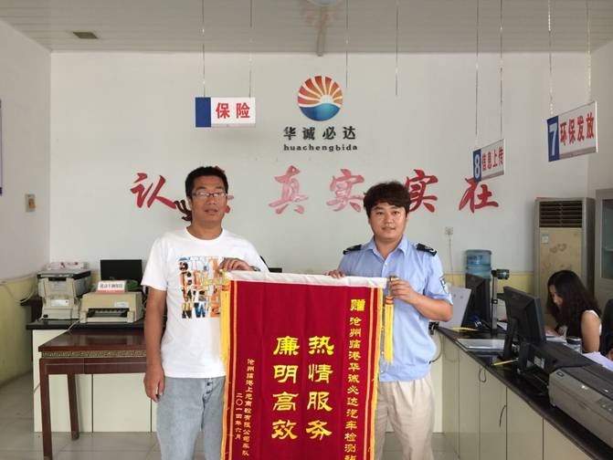 7月2日,滄州臨港上元商砼有限公司車隊(duì)的肖先生興沖沖地來(lái)到汽車檢測(cè)公司,指著手里的錦旗說(shuō):“我前幾天來(lái)貴公司辦理車輛年檢業(yè)務(wù),來(lái)得時(shí)候已經(jīng)快下班了,當(dāng)時(shí)下著小雨,我的車在中間照相環(huán)節(jié)出了一個(gè)小問題,怎么都審不過去,由于第二天急著出差,我真是心急如焚,幸虧貴公司的員工及時(shí)想辦法耐心幫我咨詢解決問題。為了表達(dá)我的心情,做了這面‘熱情服務(wù),廉明高效’的錦旗,表示感謝。”