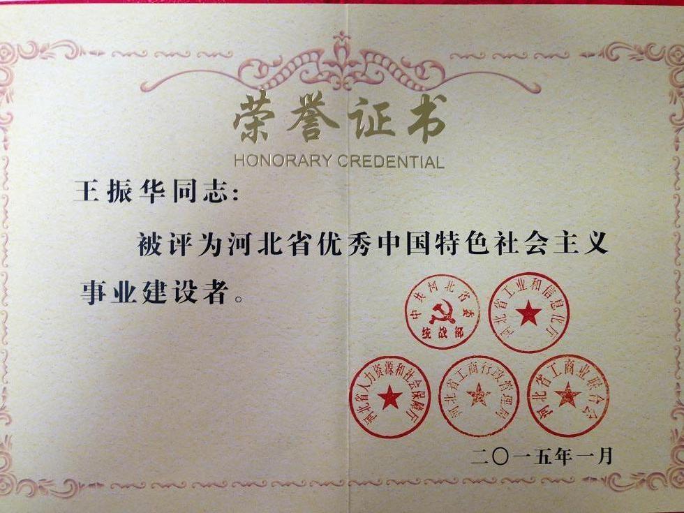 1月4日,第五屆河北省優(yōu)秀中國(guó)特色社會(huì)主義事業(yè)建設(shè)者表彰大會(huì)在石家莊召開(kāi),包括集團(tuán)公司董事長(zhǎng)王振華同志在內(nèi)的48名非公有制經(jīng)濟(jì)人士和其他社會(huì)階層人士獲得了“優(yōu)秀中國(guó)特色社會(huì)主義事業(yè)建設(shè)者”榮譽(yù)稱號(hào)。