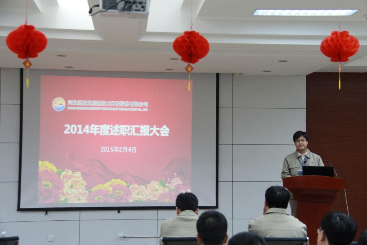 劉華冰首先宣讀了2014年度各部門績效考核成績。隨后,各部門經(jīng)理分別進行述職匯報,認真總結了2014年取得的成績和存在的不足,明確了2015年工作計劃。