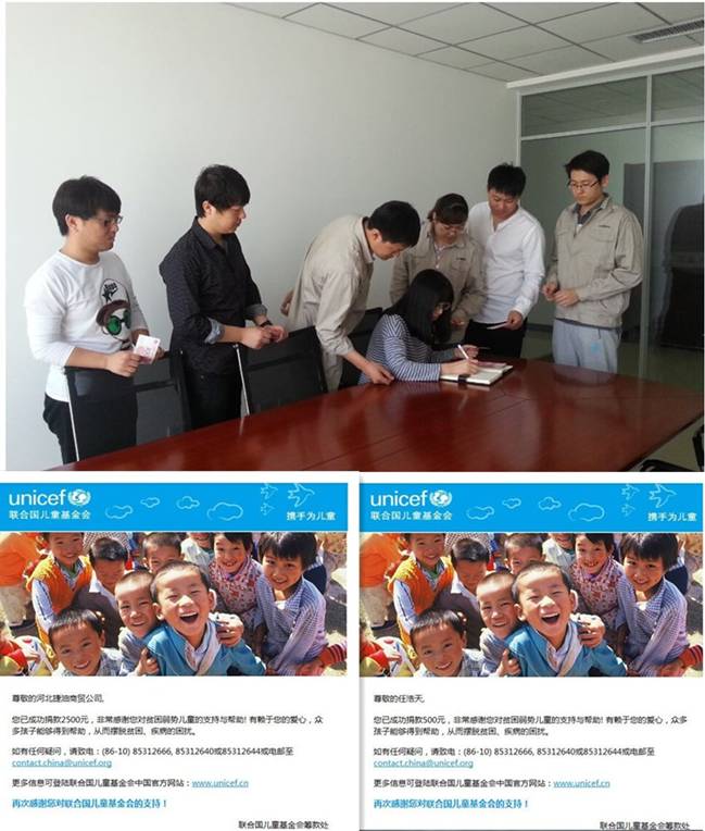 捷油公司全體員工和家屬從工資、平時的罰款中籌集資金3000元,匯給聯(lián)合國兒童基金會,奉獻(xiàn)自己的一份愛心。