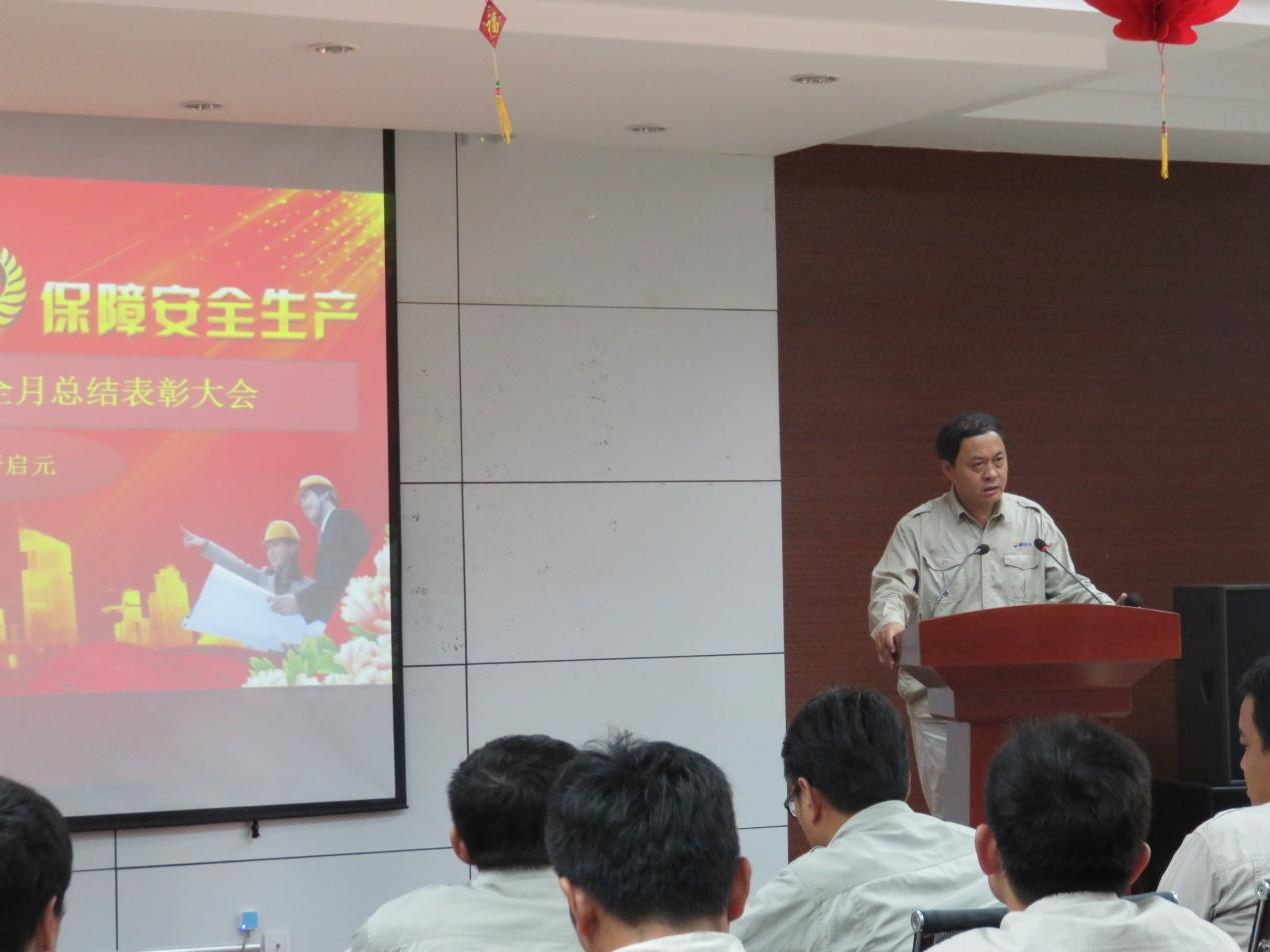 最后,副總經(jīng)理劉立新發(fā)表重要講話,充分肯定了公司“安全生產(chǎn)月”活動(dòng)取得的成績(jī),并希望各部門(mén)在當(dāng)前的基礎(chǔ)上,著力建立安全生產(chǎn)的長(zhǎng)效機(jī)制,推動(dòng)公司安全生產(chǎn)水平不斷提升。