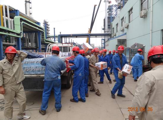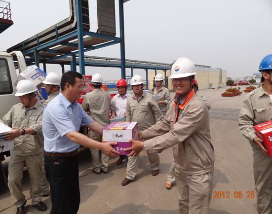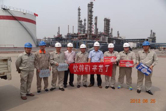 為表達集團公司對一線檢修員工的關愛,6月25日上午,總經理于國臣等集團領導來到中海石油中捷石化有限公司(合營公司)和新啟元公司檢修現(xiàn)場進行了慰問,并為他們送去了礦泉水和方便面。希望大家在檢修期間繼續(xù)發(fā)揚“不怕吃苦、任勞任怨、無私奉獻”的精神,在確保安全的基礎上,能夠按時保質保量的完成檢修任務。