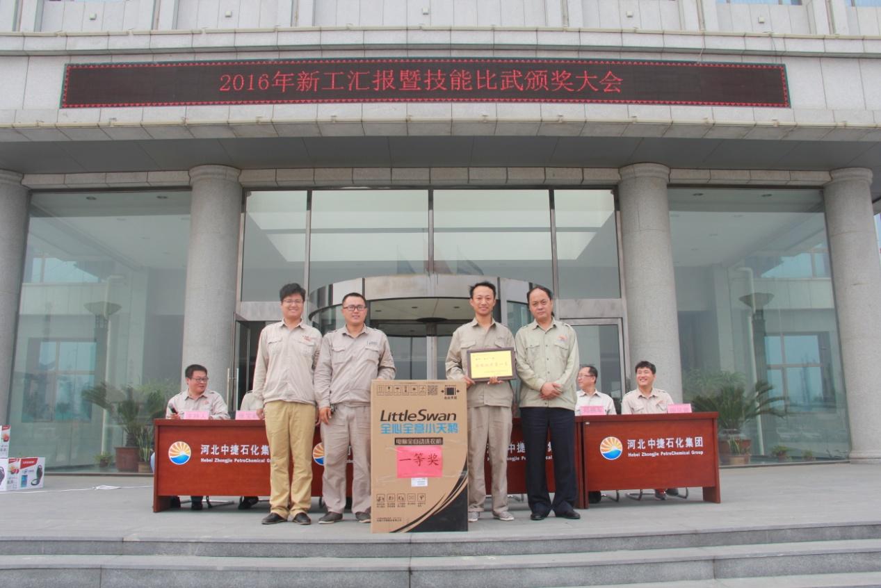 匯報結(jié)束后,公司領(lǐng)導(dǎo)為技能比武獲獎團(tuán)隊(duì)頒獎,并提出了新的要求。綜合管理部經(jīng)理李樹祥代表技能竟比組委會向大會作小結(jié)匯報。技能比武活動共分四項(xiàng)綜合比賽,參加人員涵蓋運(yùn)行部門全體管理人員、優(yōu)秀班長及操作工共計(jì)150余人。活動以安全生產(chǎn)實(shí)操為綱命題,通過竟比考核顯現(xiàn)了日常管理及技術(shù)掌握的不足,也彰顯了增加的創(chuàng)新性視頻培訓(xùn)所帶來的實(shí)用高效性,為今后提高技能培訓(xùn)開創(chuàng)了新方法。