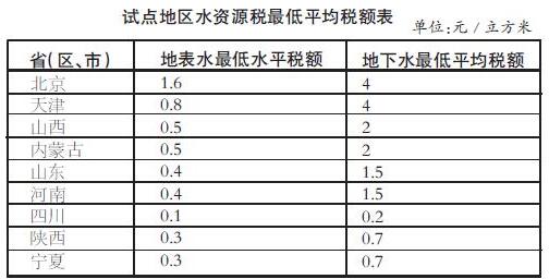此次試點(diǎn)最低平均稅額為:地表水每立方米0.1-1.6元、地下水每立方米0.2-4元。按不同取用水性質(zhì)實(shí)行差別稅額:對(duì)地下水超采地區(qū)取用地下水加征1-4倍;對(duì)超計(jì)劃或超定額用水加征1-3倍;對(duì)特種行業(yè)從高征稅;對(duì)超過(guò)規(guī)定限額的農(nóng)業(yè)生產(chǎn)取用水、農(nóng)村生活集中式飲水工程取用水等從低征稅。試點(diǎn)方案還明確了規(guī)定限額內(nèi)的農(nóng)業(yè)生產(chǎn)取用水、取用污水處理再生水、采油排水分離凈化后回注等6種減免稅情形。