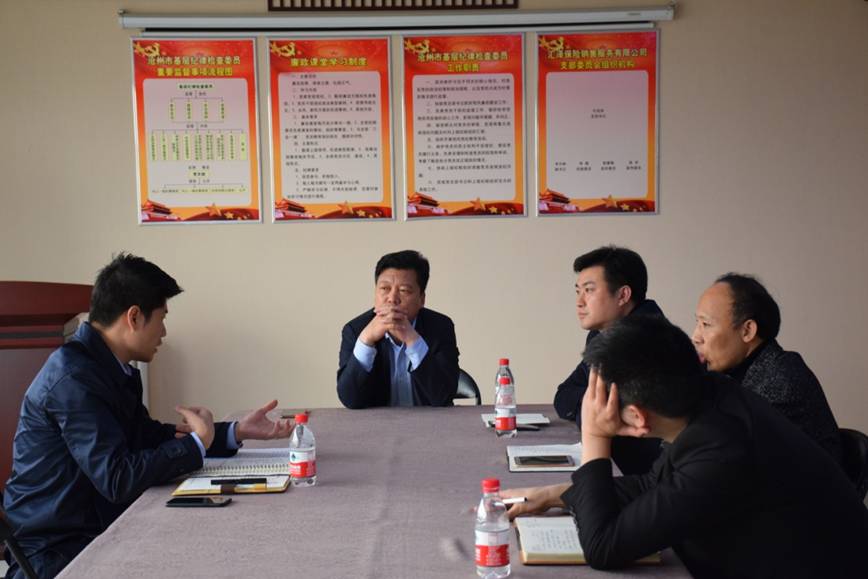 4月10日,黃驊市常務(wù)副市長(zhǎng)張劍華,城投公司總經(jīng)理劉愛民, 市金融辦主任王澤生一行蒞臨匯澤保險(xiǎn)公司進(jìn)行調(diào)研視察工作,公司董事長(zhǎng)牛旭宗,財(cái)務(wù)部經(jīng)理冉朋媛陪同接待。