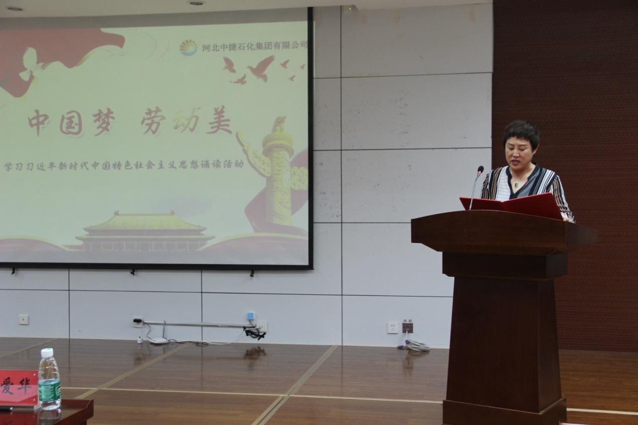 8月22日上午,集團公司在科研樓六樓會議室組織開展了“中國夢·勞動美——學(xué)習(xí)習(xí)近平新時代中國特色社會主義思想誦讀活動”。此次活動特邀渤海新區(qū)中捷產(chǎn)業(yè)園區(qū)總工會副主席王曉鳳、宣傳部副部長劉金林蒞臨現(xiàn)場觀摩指導(dǎo),集團公司黨委副書記、紀委書記朱振江,總會計師宋立峰、總工程師李金馬出席活動,工會主席趙愛華為活動致辭。