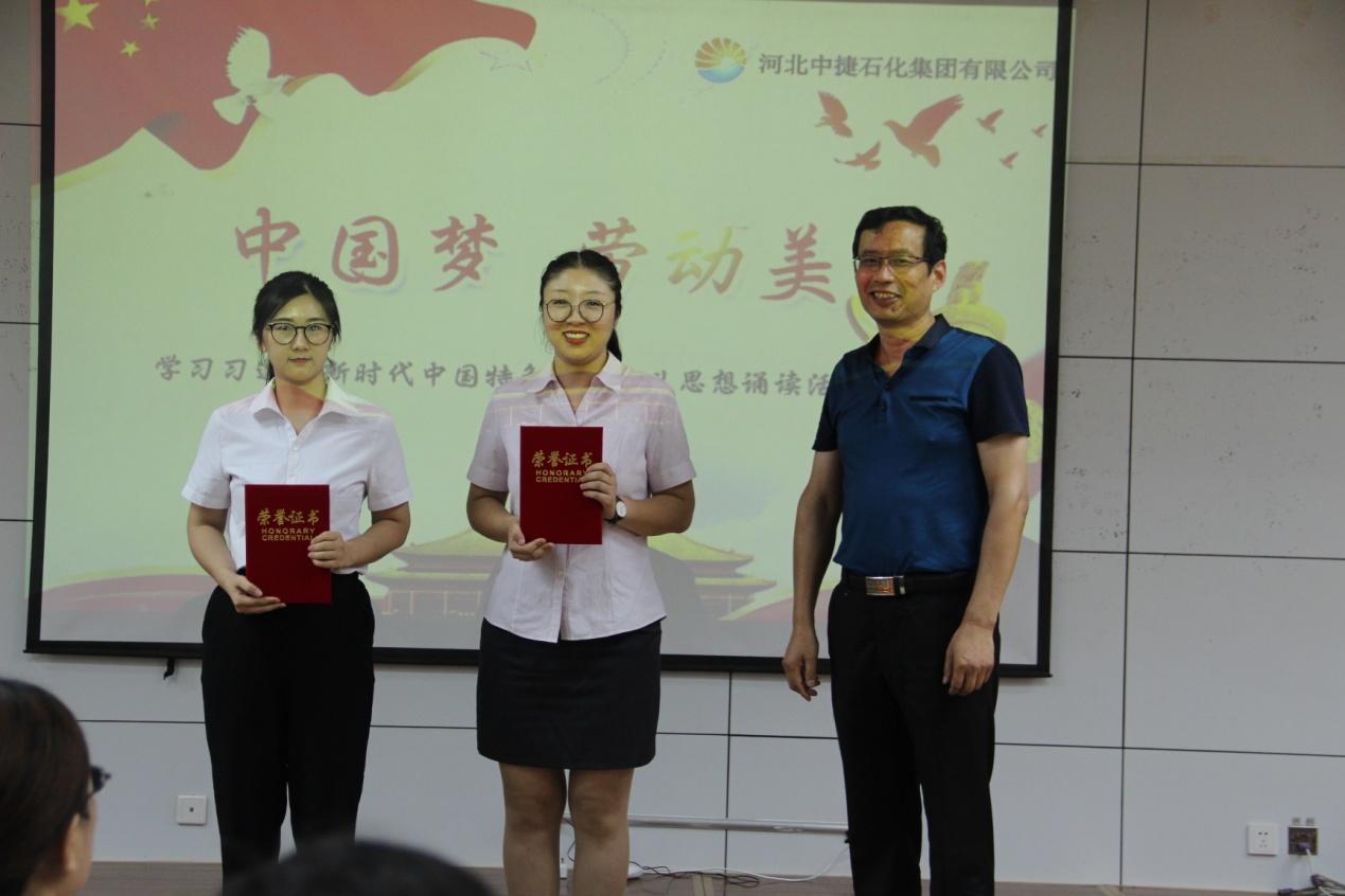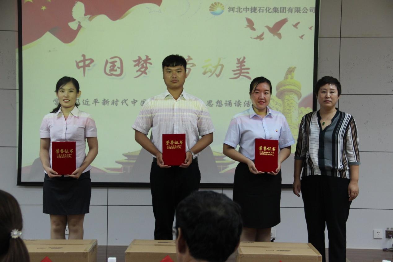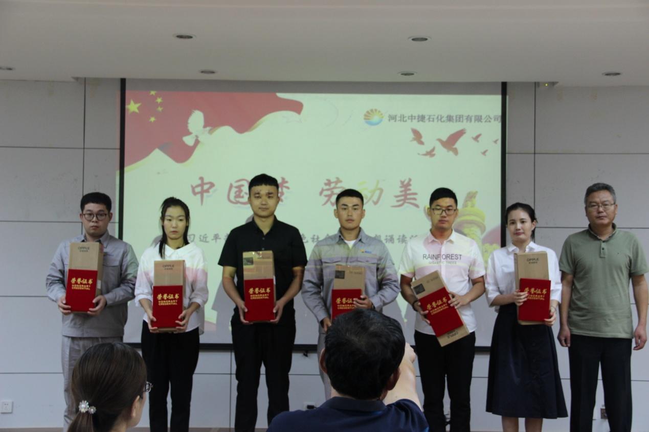 最后,各級領(lǐng)導(dǎo)為誦讀選手頒獎并合影留念,同時標志著河北中捷石化集團“中國夢·勞動美——學(xué)習(xí)習(xí)近平新時代中國特色社會主義思想誦讀活動”圓滿落下帷幕。