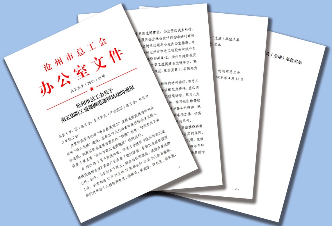 近日,中捷產(chǎn)業(yè)園區(qū)總工會為新啟元公司頒發(fā)了由滄州市總工會授予的“滄州市第五屆職工道德建設(shè)先進單位”榮譽稱號,這是新啟元公司繼榮獲“厚德企業(yè)”、“先進職工之家”、“模范職工之家”后的又一殊榮。