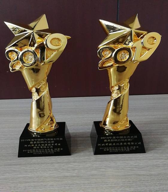 會(huì)議上,河北中捷石化集團(tuán)有限公司榮獲“2019年度中國北方大區(qū)最具影響力地方煉廠”稱號(hào)、河北新啟元能源技術(shù)開發(fā)股份有限公司斬獲“2019年度中國燃?xì)馍罴庸ば袠I(yè)最具影響力企業(yè)”稱號(hào)。