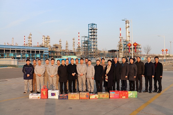 2020年1月24日,正值大年三十,河北中捷石化集團有限公司領(lǐng)導(dǎo)班子在集團黨委書記于國臣、總經(jīng)理喬樹華的帶領(lǐng)下,先后赴河北華鑫洺源石油儲運有限公司、河北新欣園能源股份有限公司、河北新啟元能源技術(shù)開發(fā)股份有限公司、河北華騰化工設(shè)備安裝工程有限公司、滄州臨港華辰石油產(chǎn)品有限公司第一加油站、河北捷馨建材責(zé)任有限公司地?zé)嵴尽ⅫS驊華悅凱旋大酒店,親切慰問了節(jié)日期間仍堅守崗位的伙伴們,為大家送去慰問品,表達(dá)了新春的祝福和節(jié)日的關(guān)懷。同時對伙伴們的辛勤付出與奉獻及廣大員工家屬的理解與支持表示誠摯的敬意和由衷的感謝,并叮囑各單位主要領(lǐng)導(dǎo)合理部署安排節(jié)日期間的工作,讓伙伴們度過祥和、歡樂的節(jié)日。