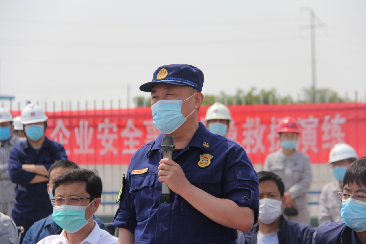 王偉支隊(duì)長(zhǎng)對(duì)此次演練進(jìn)行點(diǎn)評(píng)。他指出:此次應(yīng)急演練非常具有針對(duì)性,各參演單位精心組織、周密安排、密切配合,達(dá)到了預(yù)期效果。此次演練是深入貫徹落實(shí)習(xí)近平總書記對(duì)安全生產(chǎn)工作的重要指示精神,促進(jìn)了政府消防隊(duì)伍與企業(yè)消防隊(duì)伍之間協(xié)同作戰(zhàn)能力及水平的大幅提升。今后,我們要把功夫下在平時(shí),提升救援隊(duì)伍的精神面貌,強(qiáng)化應(yīng)急救援專業(yè)訓(xùn)練,針對(duì)突發(fā)事件應(yīng)急救援工作面臨的新形勢(shì)、新情況,崗位練兵和聯(lián)合實(shí)戰(zhàn)要相結(jié)合,做到磨練隊(duì)伍、總結(jié)經(jīng)驗(yàn)、提升能力,一旦發(fā)生事故,確保能夠快速響應(yīng),科學(xué)救援,將人員傷亡和財(cái)產(chǎn)損失降到最小。同時(shí)針對(duì)演練中暴露出的問(wèn)題要認(rèn)真總結(jié),加以改進(jìn),確保演練效果真正落到實(shí)處。