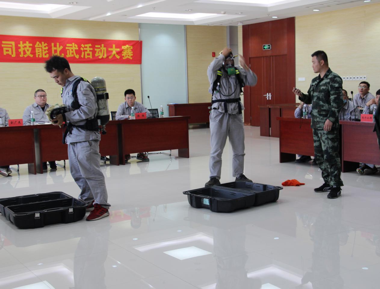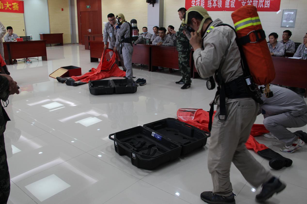 本次比賽分為“正壓式空氣呼吸器佩戴、防化服穿戴、安全知識問答”三個(gè)項(xiàng)目。在主持人發(fā)出“開始”口令后,選手們個(gè)個(gè)奮勇爭先,都拿出了自己的看家本領(lǐng),展現(xiàn)精湛的“武技”,將活動(dòng)氛圍推向高潮。經(jīng)過緊張激烈的角逐,最終運(yùn)行二部張賽以18秒03的成績獲得正壓式空氣呼吸器佩戴項(xiàng)目的冠軍,運(yùn)行一部王圣濤、馬帥以35秒71的優(yōu)異成績奪得防化服穿戴項(xiàng)目的冠軍。