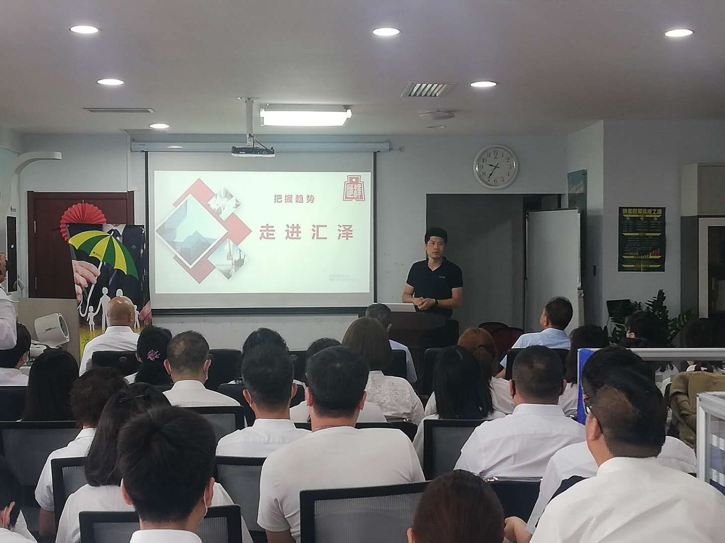 隨后,??偼ㄟ^PPT宣講的方式為天津分公司進行加油打氣。宣講內(nèi)容中,??偸紫葟膮R澤保險公司的發(fā)展史講起,到后面介紹的匯澤保險七大優(yōu)勢(強大的股東、雄厚的資本、一流的團隊、創(chuàng)新的模式、優(yōu)越的制度、精良的產(chǎn)品、廣覆的網(wǎng)絡)及匯澤保險取得的成績,再到最后的升華——對集團公司的介紹。在聽取了??偟男v后,天津分公司的員工們斗志滿滿,尤其一線業(yè)務人員,更是提出“苦干、實干、加油干”的口號。