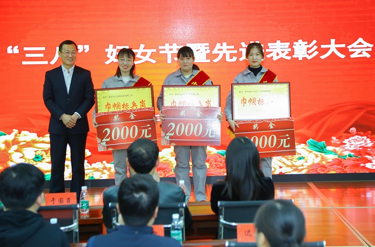 各級(jí)領(lǐng)導(dǎo)先后為先進(jìn)女職工團(tuán)體、個(gè)人以及征文比賽獲獎(jiǎng)員工頒獎(jiǎng)。