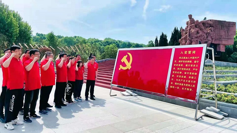 離開(kāi)紀(jì)念館時(shí),集團(tuán)公司黨員干部一行共同瞻仰了雕塑《忠魂曲》,并在集團(tuán)公司總經(jīng)理、黨委副書(shū)記喬樹(shù)華同志的帶領(lǐng)下重溫了入黨誓詞。