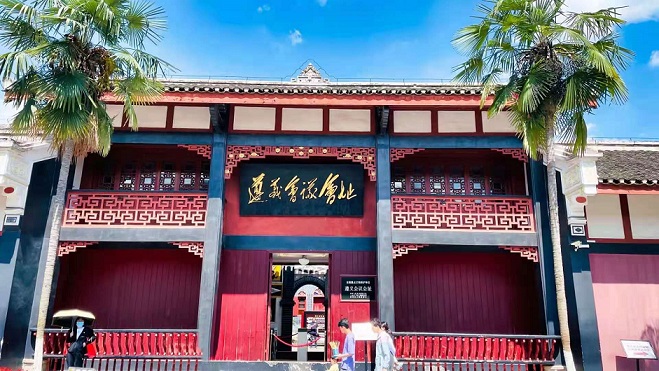 駐足遵義會(huì)議紀(jì)念館,首先映入大家眼簾的是紀(jì)念館門(mén)前大門(mén)正上方掛著的一塊黑漆金匾,上面有毛主席親自題寫(xiě)的“遵義會(huì)議會(huì)址”6個(gè)金光閃閃的大字,字跡飄逸豪放。遵義會(huì)議紀(jì)念館的展廳內(nèi)展示了大量文物、珍貴歷史圖片、文獻(xiàn)資料等,生動(dòng)地再現(xiàn)了紅軍長(zhǎng)征的歷程。“長(zhǎng)征精神誨育千秋,遵義會(huì)議永放光芒?!弊窳x會(huì)議集中體現(xiàn)了堅(jiān)定信念、實(shí)事求是、獨(dú)立自主、敢創(chuàng)新路、民主團(tuán)結(jié)的精神。
