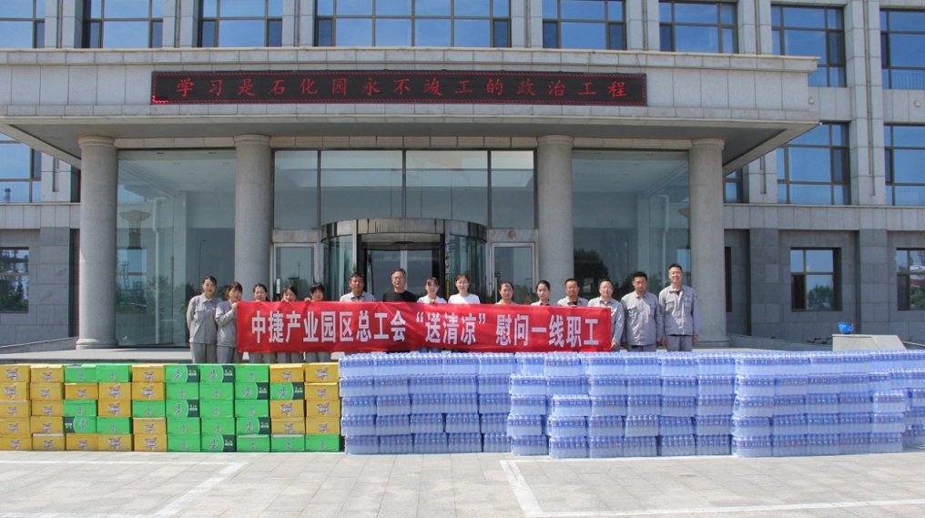 集團(tuán)公司訊 中捷產(chǎn)業(yè)園區(qū)總工會將“我為群眾辦實(shí)事”實(shí)踐活動與推動落實(shí)《安全生產(chǎn)法》、《防暑降溫措施管理辦法》等法律法規(guī)結(jié)合起來,聯(lián)手河北中捷石化集團(tuán)工會,深入一線,送上酷暑里的清涼。7月20日上午,園區(qū)總工會領(lǐng)導(dǎo)一行來到集團(tuán)公司,向一線伙伴們送上誠摯的慰問。集團(tuán)公司黨委副書記、工會主席朱振江,新啟元公司工會主席張金甫,以及來自生產(chǎn)部門的10余名代表盛情接待。