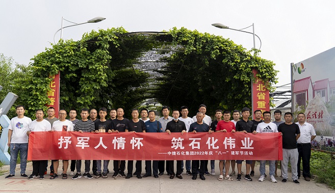 集團(tuán)公司訊 為發(fā)揚集團(tuán)公司擁軍優(yōu)屬的光榮傳統(tǒng),謳歌人民解放軍對偉大祖國和人民做出的豐功偉績,頌揚人民解放軍為保衛(wèi)祖國用血肉筑起的鋼鐵長城,引領(lǐng)廣大職工進(jìn)一步深刻領(lǐng)會和繼承人民解放軍無私奉獻(xiàn)和忠誠擔(dān)當(dāng)?shù)膬?yōu)良作風(fēng)和革命精神,團(tuán)結(jié)廣大職工立足新時代、新時期,開拓創(chuàng)新,扎實工作,牢記使命,堅定信念,以奮斗者的姿態(tài),以飽滿的熱情譜寫百年石化夢的新篇章,8月1日,集團(tuán)黨委組織開展了“抒軍人情懷 筑石化偉業(yè)——熱烈慶祝中國人民解放軍建軍95周年”集團(tuán)2022年慶“八一”建軍節(jié)活動。集團(tuán)董事長王振華,黨委書記于國臣,黨委委員、副總經(jīng)理張鵬,財務(wù)總監(jiān)宋立峰,以及各黨(總)支部書記、各所屬單位退伍軍人共計38人參加了此次活動。