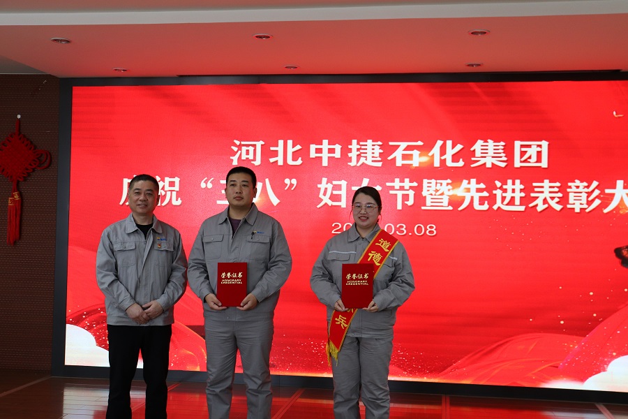 集團(tuán)公司訊 3月8日上午,河北中捷石化集團(tuán)在科研樓六樓會(huì)議室組織舉辦了慶祝“三八”婦女節(jié)暨先進(jìn)表彰大會(huì)。集團(tuán)公司領(lǐng)導(dǎo),各黨(總)支部書記、工會(huì)主席,先進(jìn)女職工、征文獲獎(jiǎng)?wù)?0余人參加。中捷產(chǎn)業(yè)園區(qū)群團(tuán)工作部、政法辦相關(guān)領(lǐng)導(dǎo)出席了本次活動(dòng)。