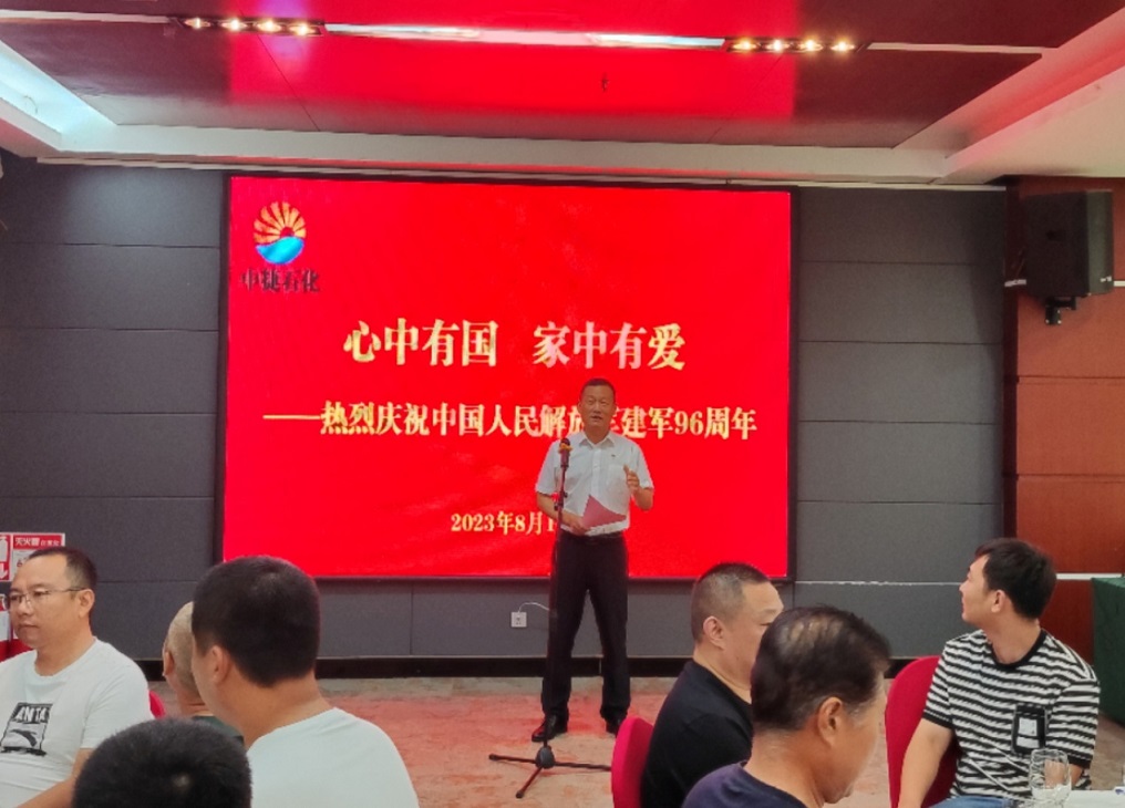 集團公司訊 為慶祝中國人民解放軍建軍96周年,謳歌人民解放軍對偉大祖國和人民做出的豐功偉績,頌揚人民解放軍為保衛(wèi)祖國用血肉筑起的鋼鐵長城,繼承人民解放軍無私奉獻和忠誠擔當?shù)膬?yōu)良作風和革命精神,團結廣大職工立足新時代、競技新賽道、邁步新征程,開拓創(chuàng)新,扎實工作,8月1日,集團黨委組織開展了“心中有國 家中有愛——熱烈慶祝中國人民解放軍建軍96周年”集團2023年慶“八一”建軍節(jié)活動。集團董事長王振華,黨委書記于國臣,總經理喬樹華,以及各黨(總)支部書記、各所屬單位退伍軍人共計40人參加了此次活動。