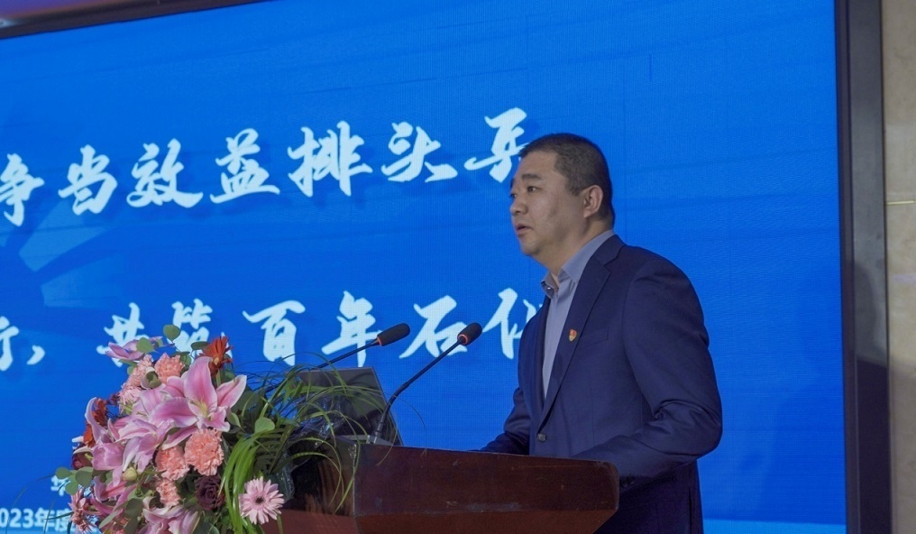 新欣園公司總經(jīng)理王政,華鑫洺源公司總經(jīng)理王猛,華辰石油公司總經(jīng)理蔣富強(qiáng),貸款公司總經(jīng)理王雪雁作為下屬單位總經(jīng)理代表依次上臺(tái),作2023年度工作匯報(bào)。