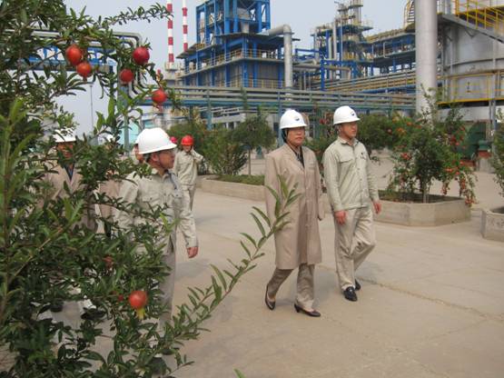會后,公司生產(chǎn)副總經(jīng)理劉海軍帶領校方代表參觀了廠區(qū),并對現(xiàn)有裝置及在建項目進行了全面的講解。隨后雙方又一同參觀了操作室,并與各裝置操作人員進行了親切的交流。