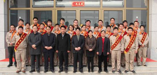 會后,公司領(lǐng)導(dǎo)與受表彰的先進代表在員工食堂門口合影留念。