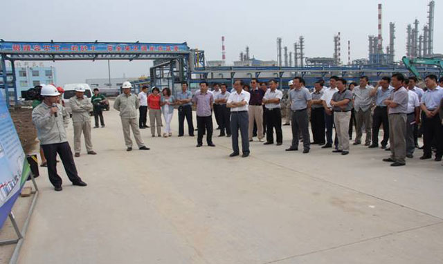 2013年7月13日上午,中捷產(chǎn)業(yè)園區(qū)黨委書記呂振華帶領(lǐng)全體領(lǐng)導(dǎo)班子蒞臨新啟元,此次行程主要是參觀指導(dǎo)2013年全區(qū)重點項目建設(shè)情況。集團(tuán)總經(jīng)理于國臣、常務(wù)副總經(jīng)理劉國新、新啟元公司董事長李志剛、總經(jīng)理喬樹華等領(lǐng)導(dǎo)在蒽油加氫項目現(xiàn)場熱情接待了他們。