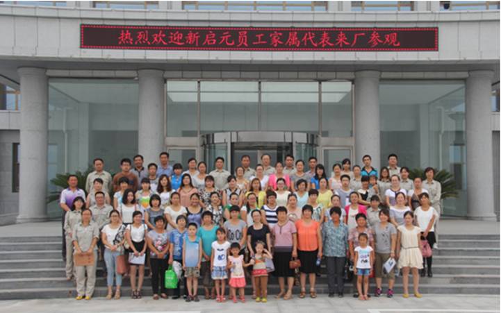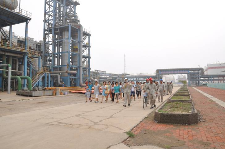 2013年8月4日是公司各級管理人員家屬走進新啟元的日子,上午10:00員工家屬在綜合管理部人員的陪同下來到新啟元,與公司領導共同見證了蒽油反應器吊裝的過程,并由各部室負責人陪同員工家屬繞廠區(qū)參觀,對各裝置情況作了了解。