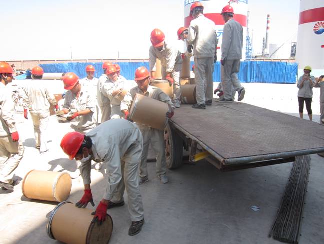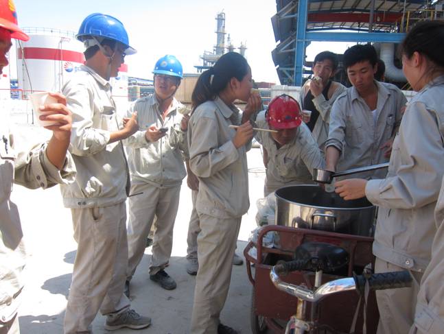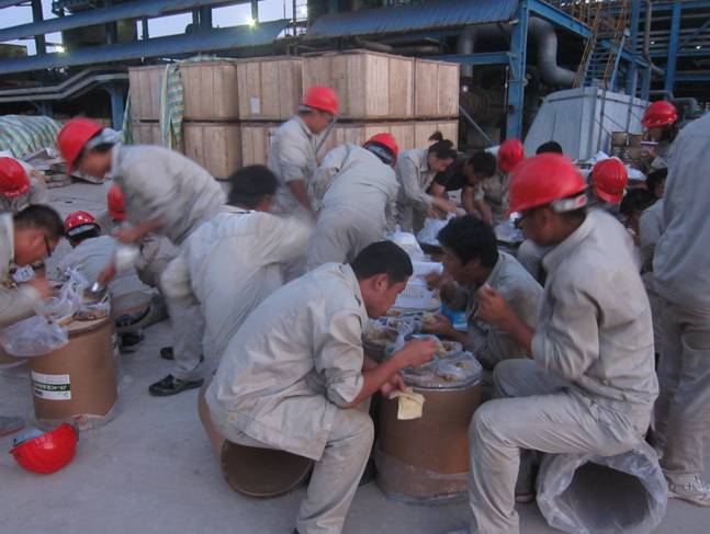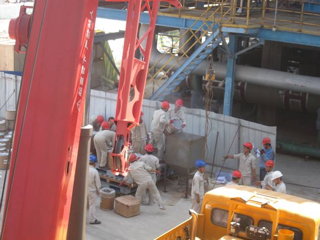 一次又一次的裝運(yùn)、搬卸、裝填,現(xiàn)場全是伙伴們忙碌的身影。數(shù)不清到底裝填了多少袋瓷球,多少桶催化劑,大家匆匆吃過午飯后又投入到了繁忙的工作中,一直到很晚。